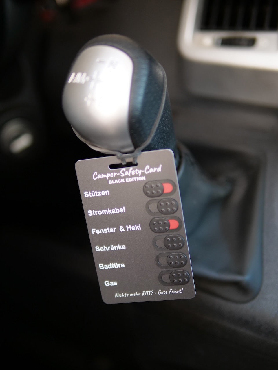 Du hängst die Card einfach ans Lenkrad oder an den Schaltknauf und wirst damit immer an die wichtigsten Dinge erinnert!